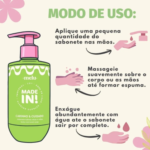 Sabonete Líquido Corpo e Mão Carinho & Cuidado Made In! - Melu by Ruby Rose