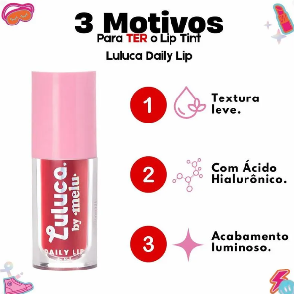 Lip Tint Daily Lip - Melu By Luluca é a escolha perfeita para quem busca um toque de cor natural e hidratação intensa para lábios e bochechas. Com fórmula enriquecida com ácido hialurônico e extrato de frutas vermelhas, este lip tint proporciona uma pigmentação vibrante e um acabamento viçoso e duradouro.